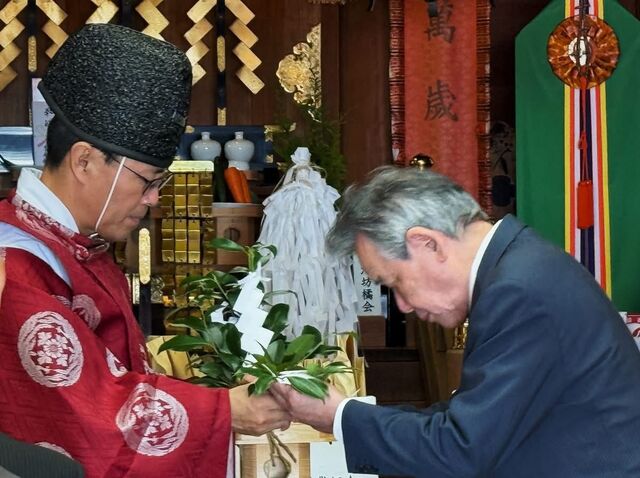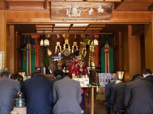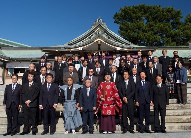 9/1~10/10に各店舗で集めた利用客の毛髪を神前に供え、代表者が玉串をささげて拝礼しました。終了後「床屋発祥の地記念碑」に赴き参拝しました。