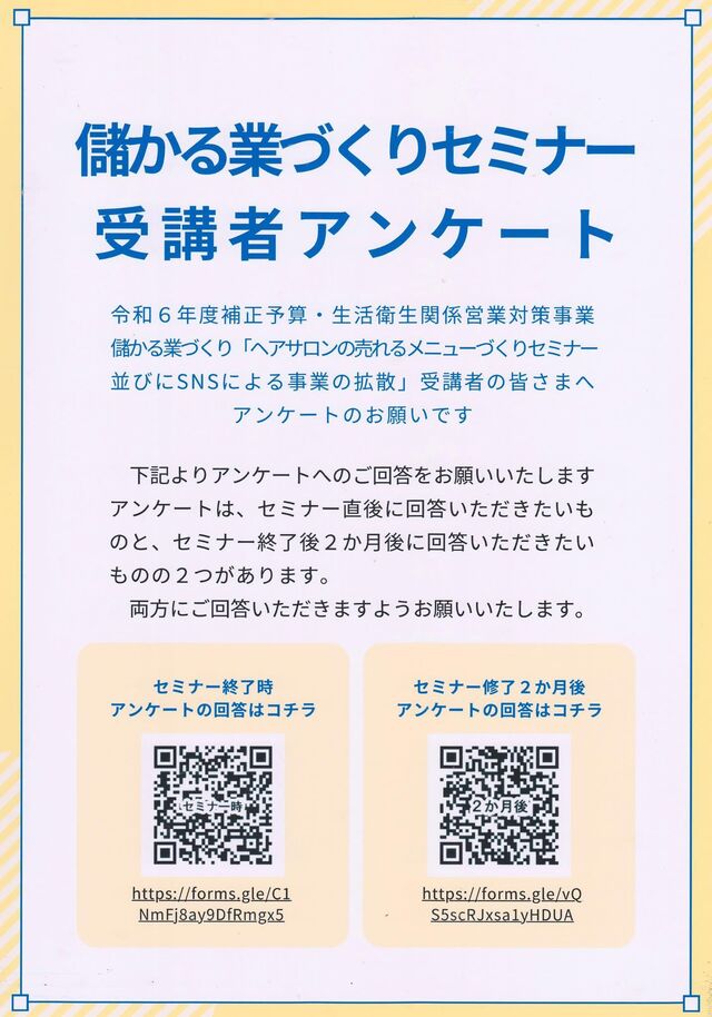 セミナー修了2か月後 アンケートの回答をお願いします。